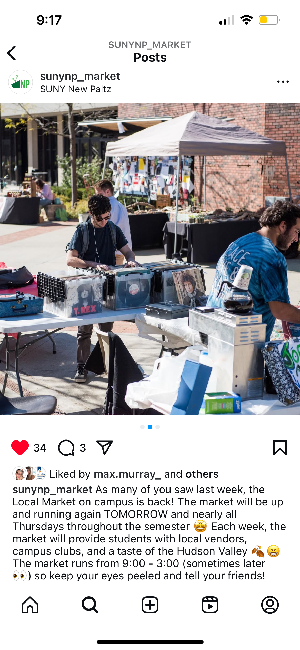 Social media campaign created for the weekly market hosted by Campus Auxiliary Services, Inc. at SUNY New Paltz. Eye-catching graphics and informative copy were posted on Instagram, Facebook and displayed as digital signage, boosting campus engagement. Marketing efforts also expanded further into the community by increasing the amount of participating vendors and the operation's overall revenue. This project showcases my ability to create dynamic, platform-specific content that drives engagement and enhances brand identity.